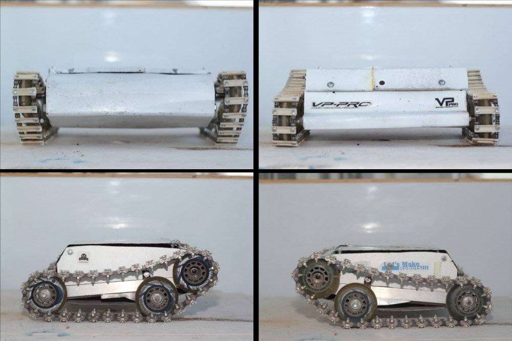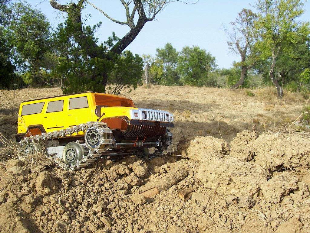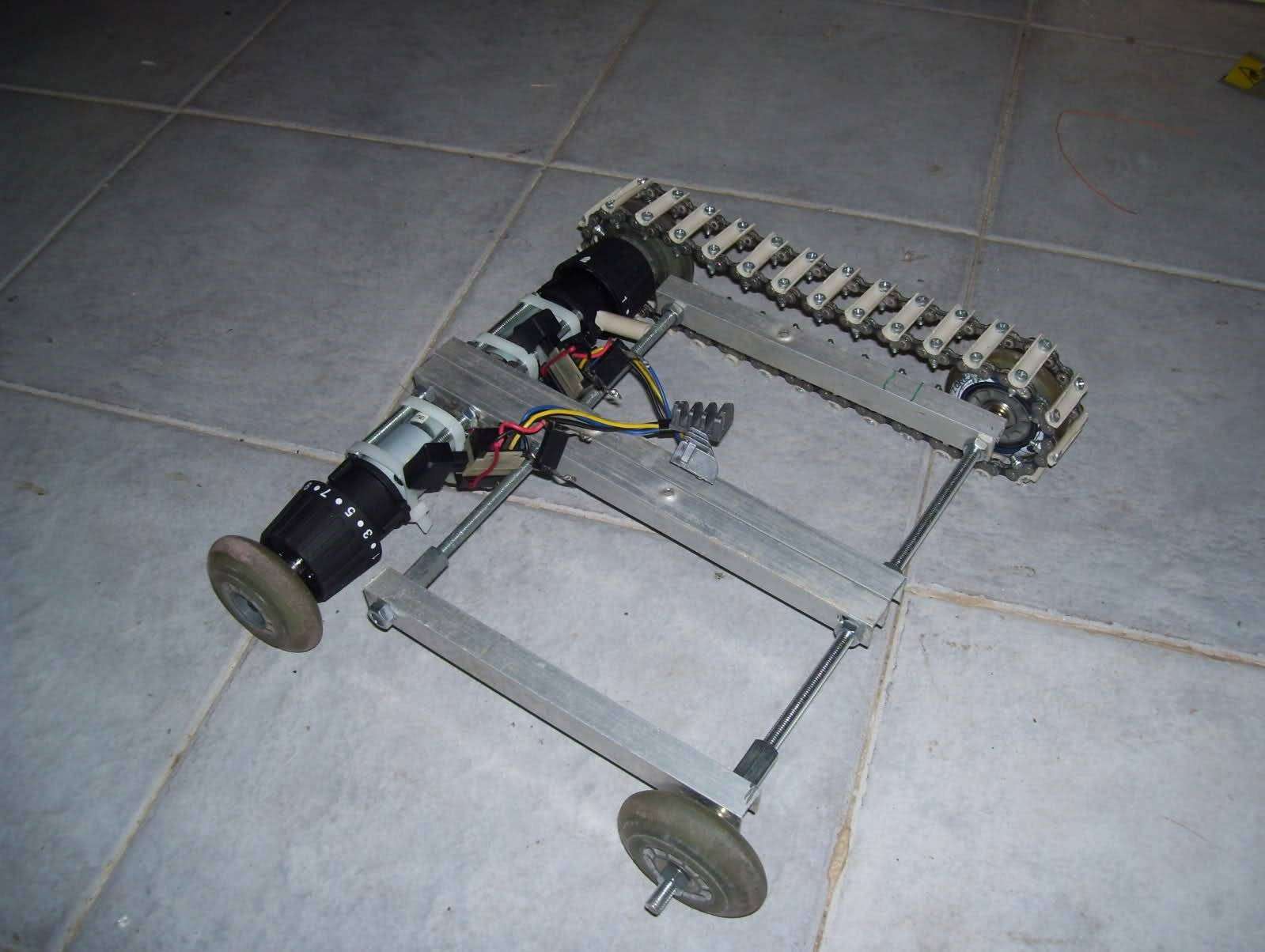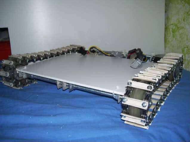 Features a fully custom metal chassis, and “tank” like tracks.